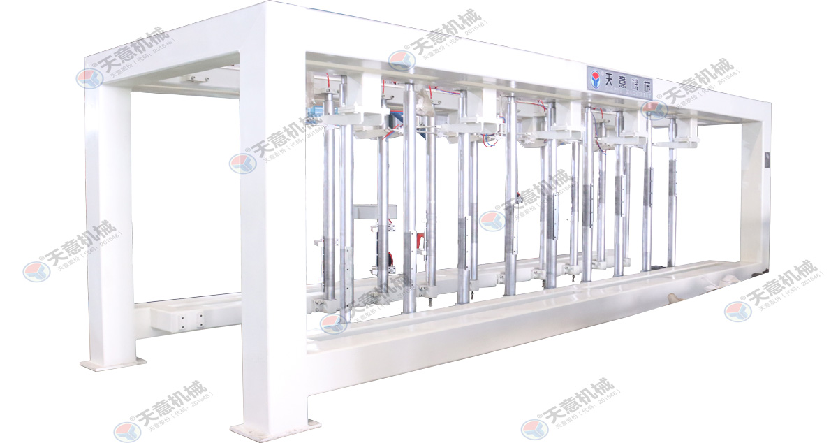 坯體經(jīng)過發(fā)泡靜停達到切割要求后模具轉(zhuǎn)移至切割區(qū),由翻轉(zhuǎn)機分離模具并將坯體翻轉(zhuǎn)90度放到蒸養(yǎng)小車上,然后經(jīng)過切割工序?qū)ε黧w進行側(cè)面切割刨槽及水平和垂直分割,使之達到外觀尺寸要求,切割工作可以機械化進行也可人工操作,這道工序直接決定ALC板材的制品外觀質(zhì)量以及某些內(nèi)在質(zhì)量。