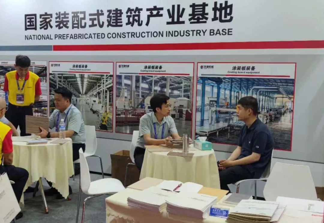 展位現場,天意機械重點展示的裝配式內外裝飾一體化板智能裝備是生產醫療潔凈板的主要設備,吸引了眾多業內專家、參展商及眾多觀眾的關注。