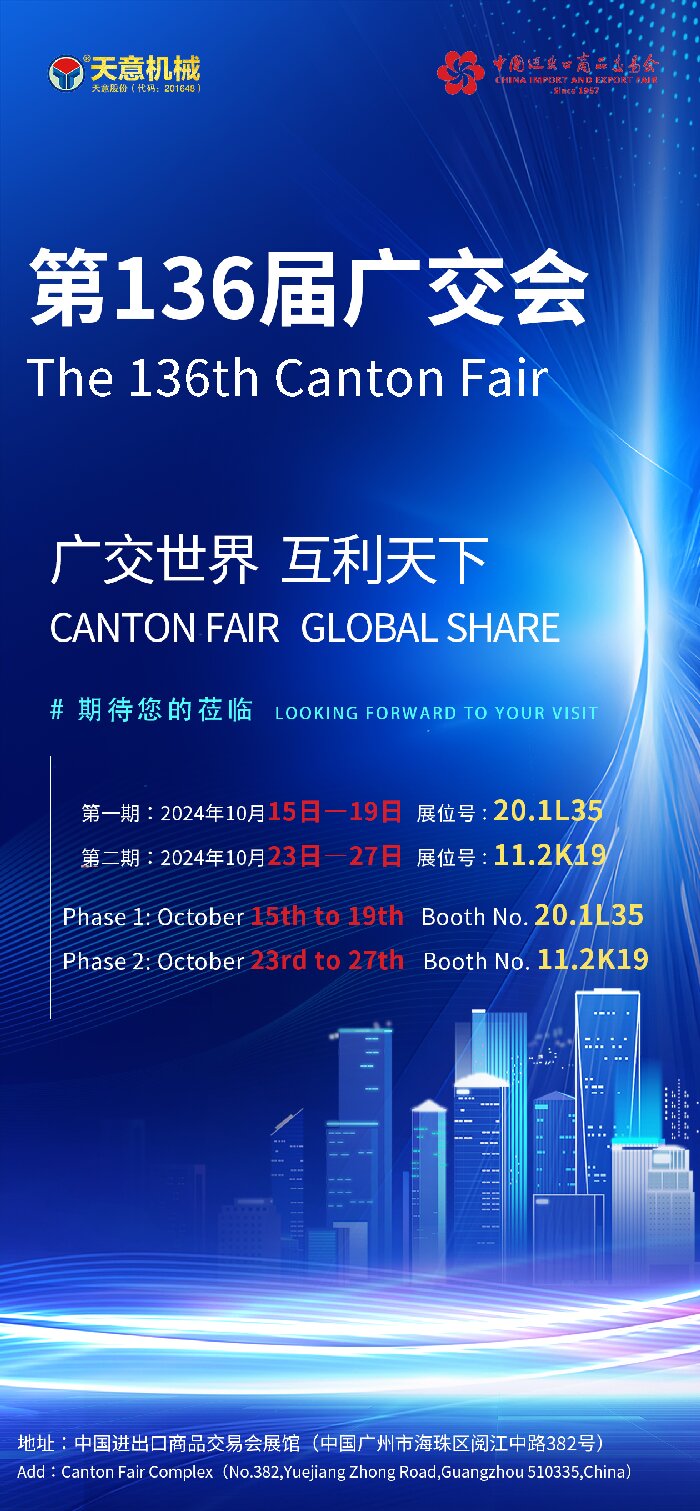 第136屆廣交會的日益臨近,天意機械已經整裝待發,期待在展會期間與全球客戶探討合作機會,推動雙方共同發展。未來,天意機械將繼續秉承“質量第一、客戶至上”的理念,不斷提升自身的技術實力和市場競爭力,為全球客戶提供更加優質的產品和服務。
