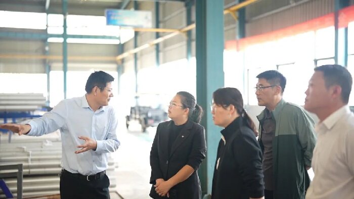 在副總經理尹曙光的引導下,調研組首先參觀了綠色建材鋁合金門窗智能化生產線及超強高韌鋁型材智能生產線。天意集團自主研發的超強高韌鋁型材智能生產線,產品抗拉強度達到520MPa,較傳統材料提升30%以上,可完全滿足高端工業鋁型材的應用需求。