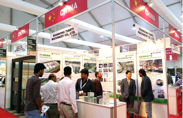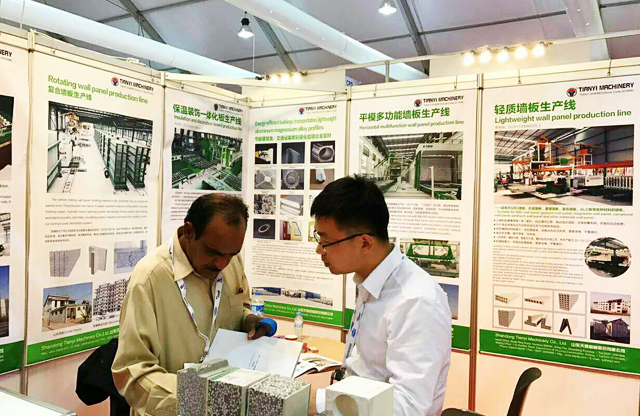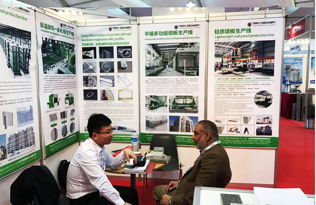 作為中國裝配式裝配品牌代表之一,天意亮相2017年沙特吉達五大行業展覽會。主要參展產品有預制混凝土PC生產線、保溫裝飾一體化板生產線、輕質墻板生產線等產品。亮相首日,即吸引了大批客商前來觀摩了解,天意國際貿易部銷售經理詳細為來訪客戶人介紹天意裝備在建筑領域應用優勢以及成本分析。