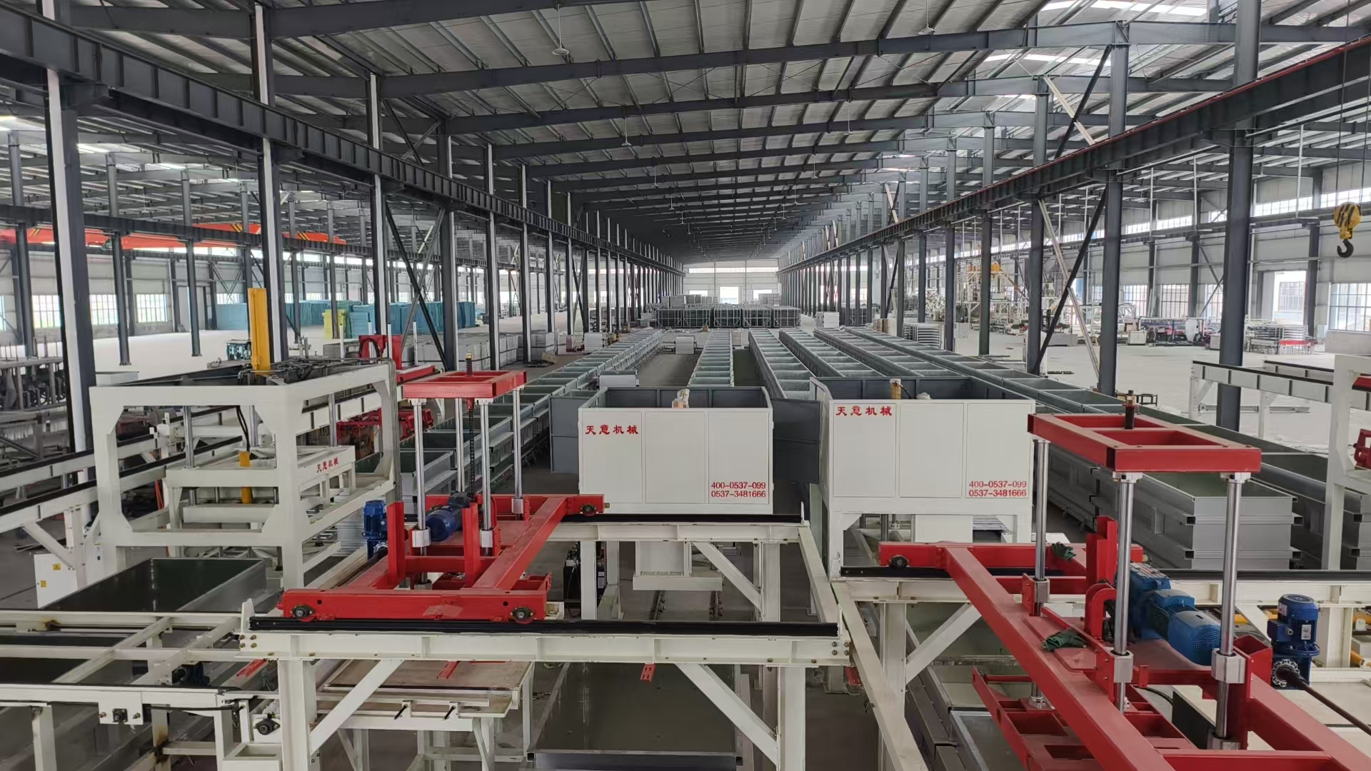 勻質(zhì)生產(chǎn)線主要生產(chǎn)工序包括:原料儲存、原材料自動輸送和計量系統(tǒng)、攪拌系統(tǒng)、澆注系統(tǒng)、壓膜成型系統(tǒng)、養(yǎng)護、出塊系統(tǒng)、自然養(yǎng)護、切割系統(tǒng)、成品碼垛系統(tǒng)等。